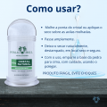 A poderosa ação antisséptica do desodorante de cristal mineral, além de prevenir o odor sem bloquear a transpiração, é inócuo ao organismo e auxilia a impedir infecções na pele.